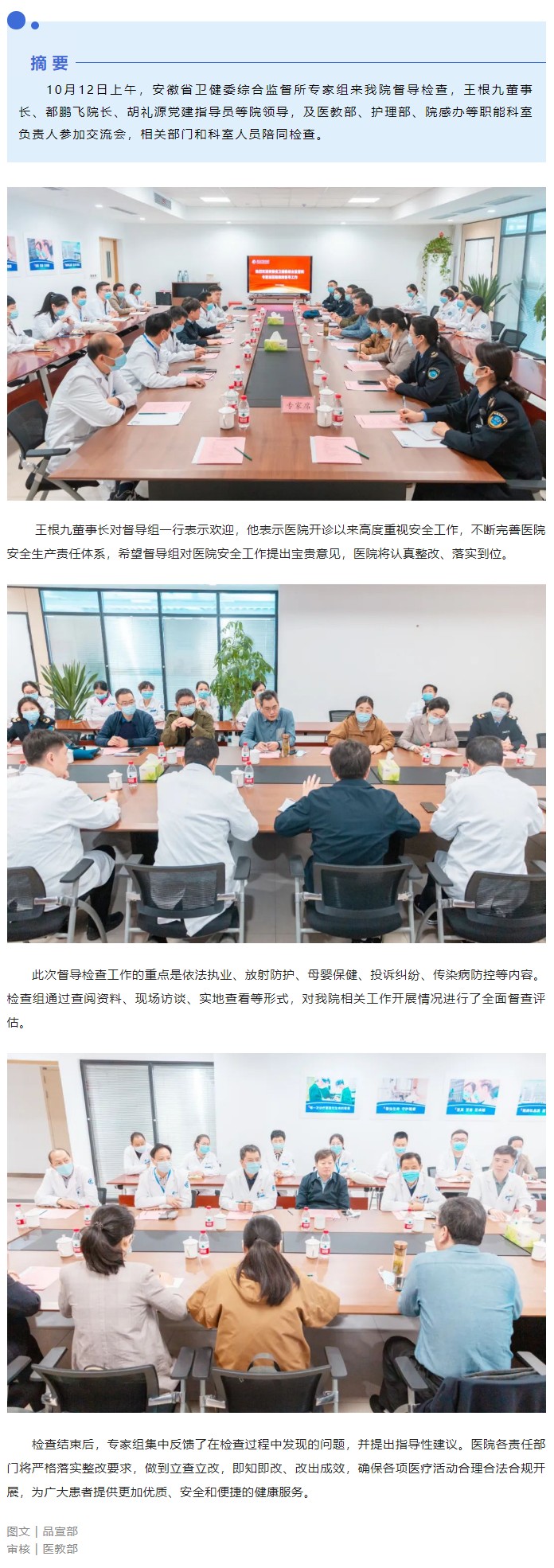 安徽省卫健委综合监督所来我院开展督导检查工作